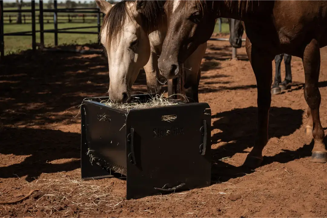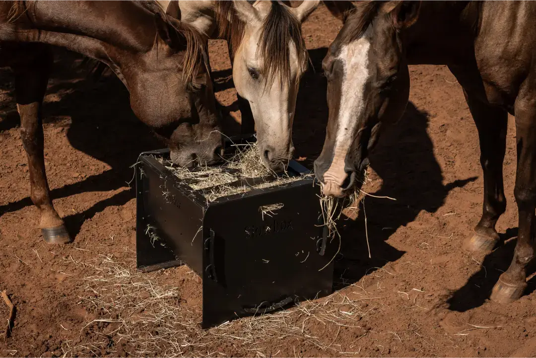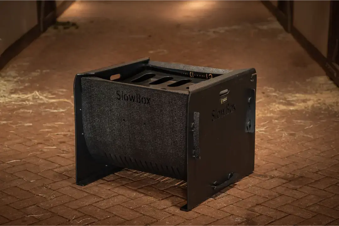 Slowbox: O cocho de feno inovador que promove saúde e bem-estar para seu cavalo.