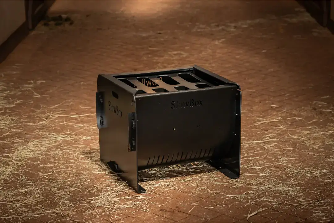 Slowbox: O cocho de feno inovador que promove saúde e bem-estar para seu cavalo.